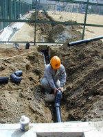 学校の水道管の埋め込み工事をしています